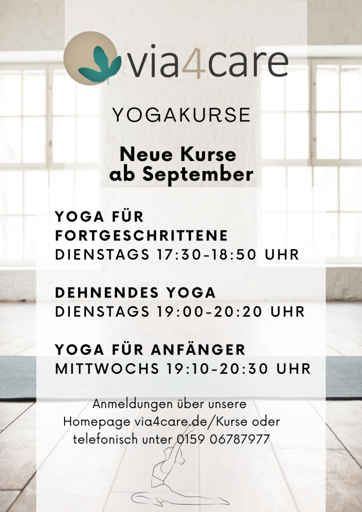 Weitere Informationen unter gesundheitszentrum@via4care.de oder per Telefon unter 0621-17858890 oder 0159-067 87 977. Eine Anmeldung zum Kurs kann direkt über unsere Homepage erfolgen.